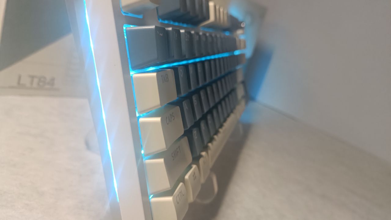 整把鍵盤在燈光方面的效果很強,高亮度的RGB燈效可以說相當有氛圍感,而左右兩側也設計了燈條,所以在使用時還是蠻炫酷的。