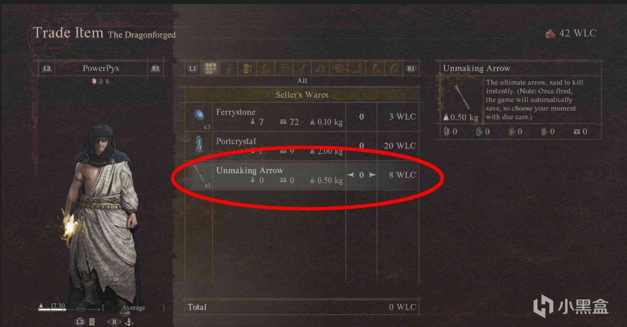 - 從龍裔購買 1 支 Unmaking Arrow,可以由此獲得8個龍血晶,這將爲你完成成就【過早的沉默】—“已在短時間內討伐巨人”作好基礎,記得選好“弓箭手”職業才能使用特定箭頭,且只能使用一次