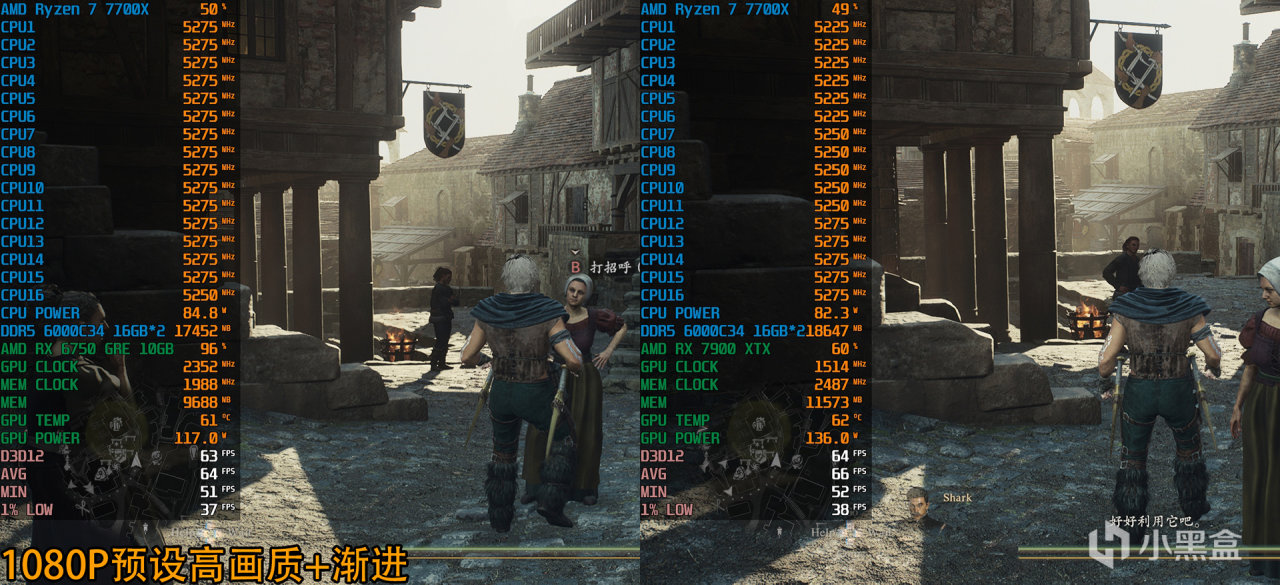 在測試顯卡之前,硬核也簡單對CPU相關方面進行測試,7700X無論是搭配RX 6750 GRE 10還是RX 7900 XTX,1080P分辨下在維倫沃斯城內幀數表現都是一致的,這就說明此時CPU是完全瓶頸狀態,1% LOW幀較低就說明一切,這種情況只能等待官方去優化修復,硬核已經試過最強的CPU差別不是特別大,尤其是1% LOW幀方面。
