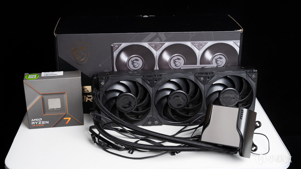 壓制CPU的水冷散熱器來自微星MEG CORELIQUID S360戰神,定位是自家旗艦級散熱器,整體外觀風格也是偏向低調——採用三枚高性能無光純黑冷排扇,冷頭部分搭載2.4英寸IPS顯示屏,能檢測硬件運行過程中的情況並顯示在屏幕上,也可以自定義其他圖片或者動畫,可玩性和性能兼得。