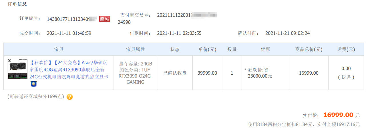 2021年雙12時買在了價格最高點,目前殘值也就四五千塊錢吧,性能方面還不如RTX 4070 super給力,請叫我大冤種。