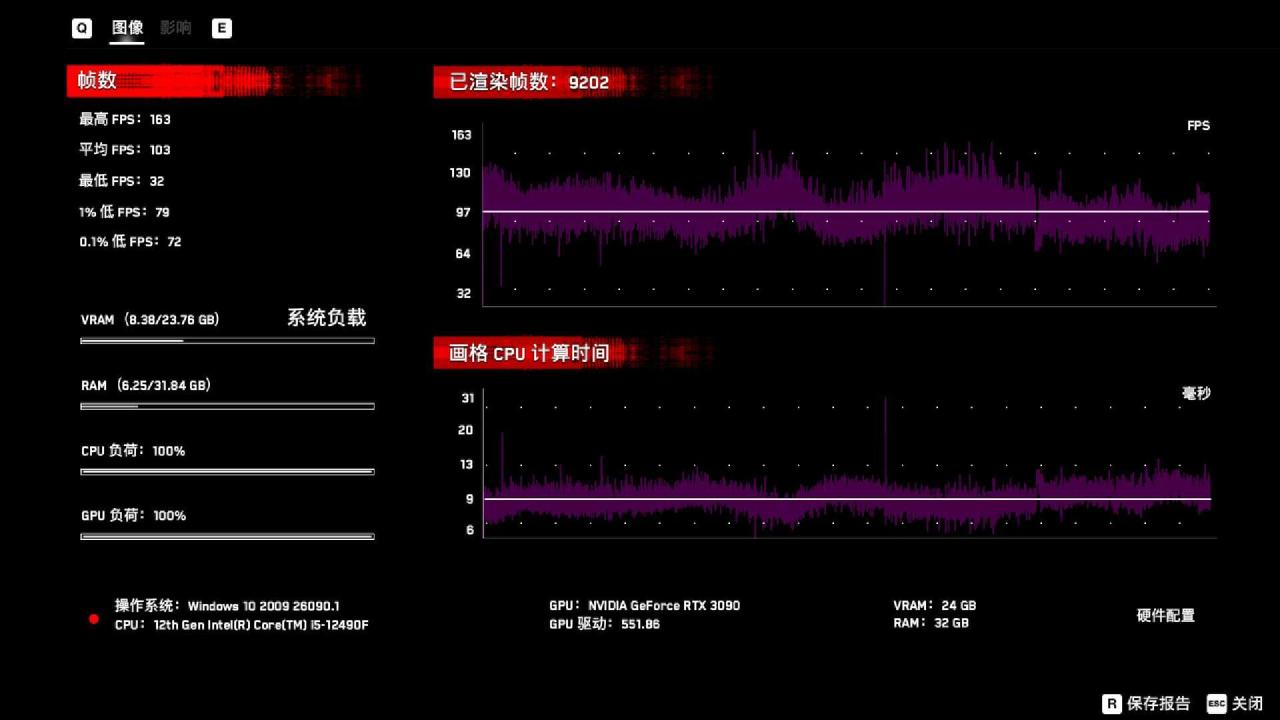 在最高畫質檔位下,測得平均幀數爲103 幀,最高幀數163幀,可以充分體驗高刷屏的流暢快感: