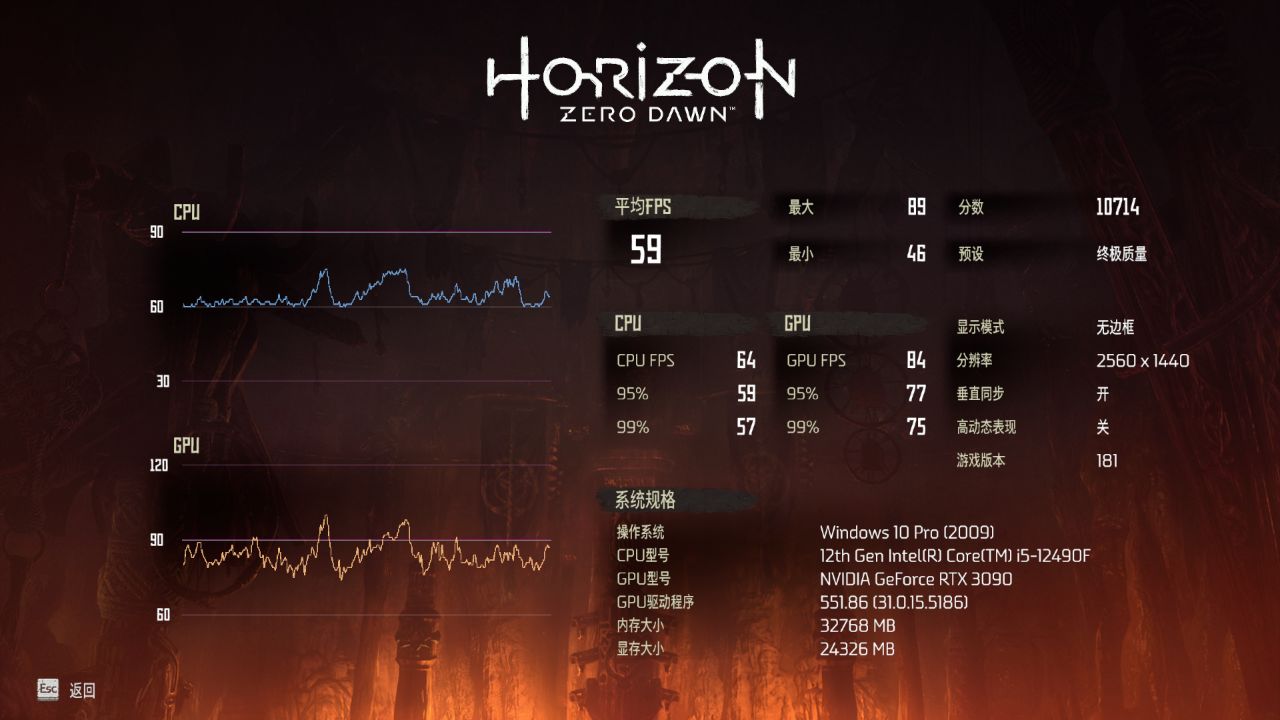 使用中級質量畫質檔位測試,測得平均幀數爲59幀,看來這款遊戲還是很喫硬件配置的,大家玩的時候可以適當拉低點兒特效來提高幀數: