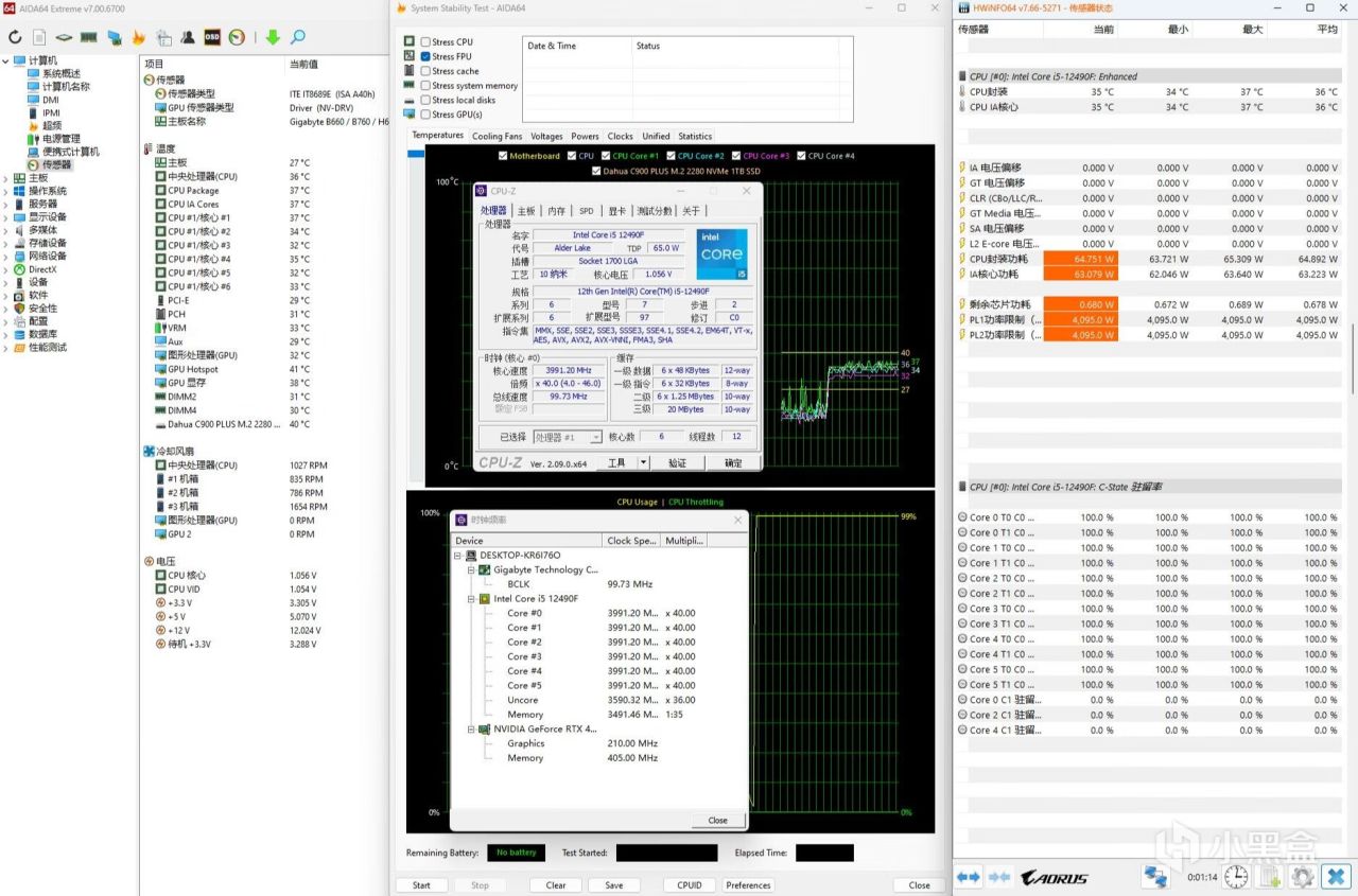 ▼日常待機情況,室溫在20℃左右,處理器的待機溫度極低,僅有19℃,就離譜。不過12490F這顆處理器的功耗和發熱都不大,這裏用360一體式水冷來壓只是爲了好看,哈哈。