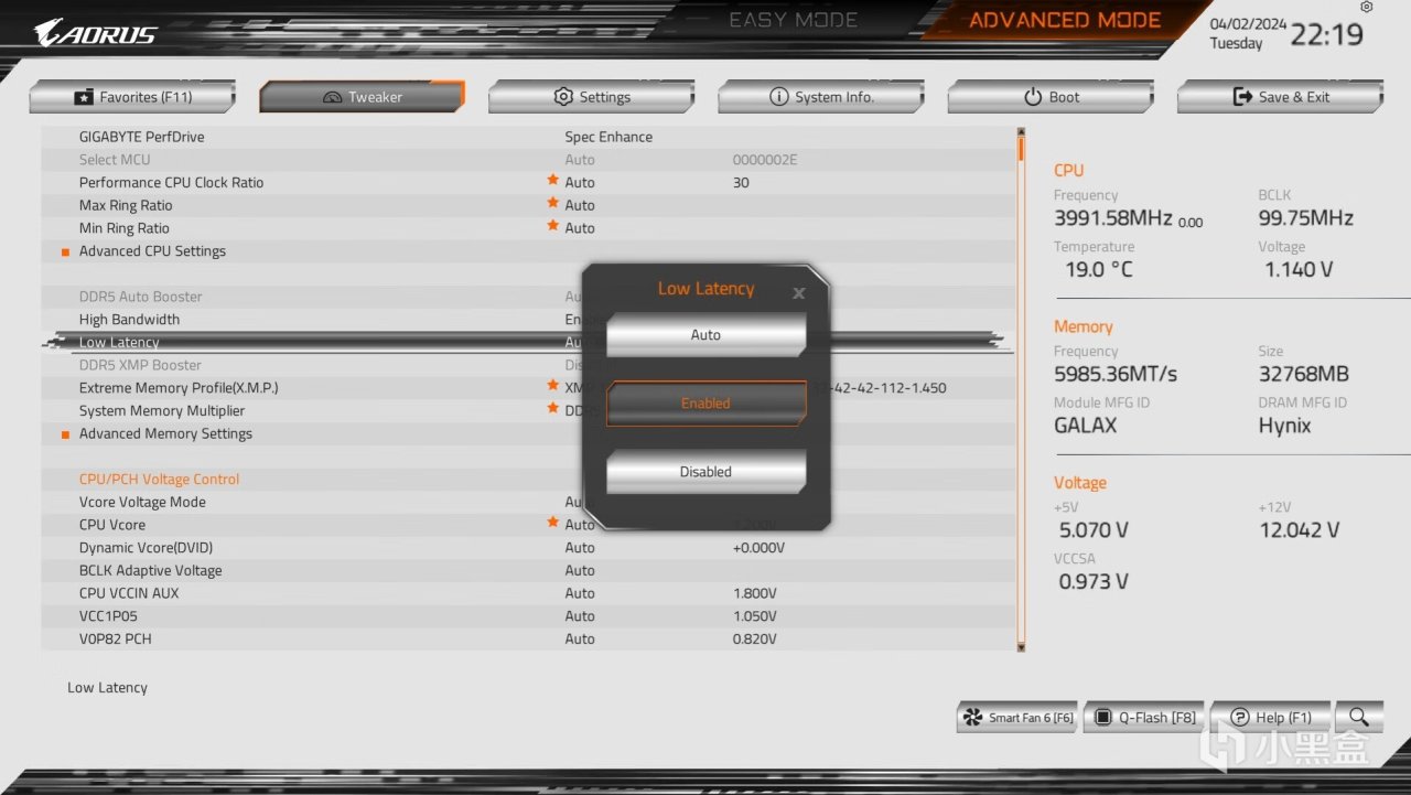 ▼對了,這塊主板支持技嘉的D5黑科技技術,在設置內存XMP的同時,記得打開主板BIOS的內存高帶寬和低延遲選項。