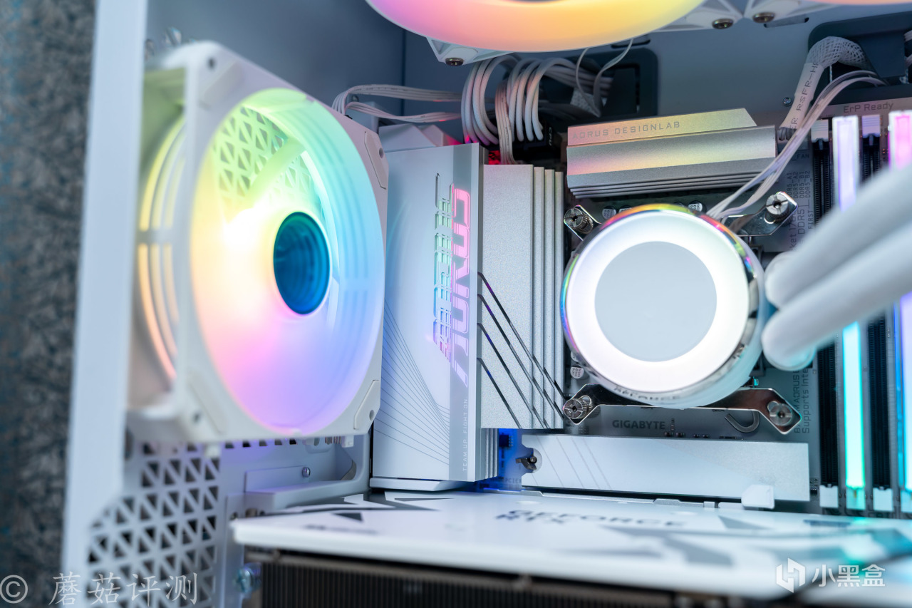 ▼技嘉這塊B760M冰雕X主板標配的5V三針的燈效接口是ARGB Gen2的,在默認的炫彩燈效模式下,蘑菇感覺整體的燈效會更加漂亮,顏色顯示的更多,質感更漂亮。