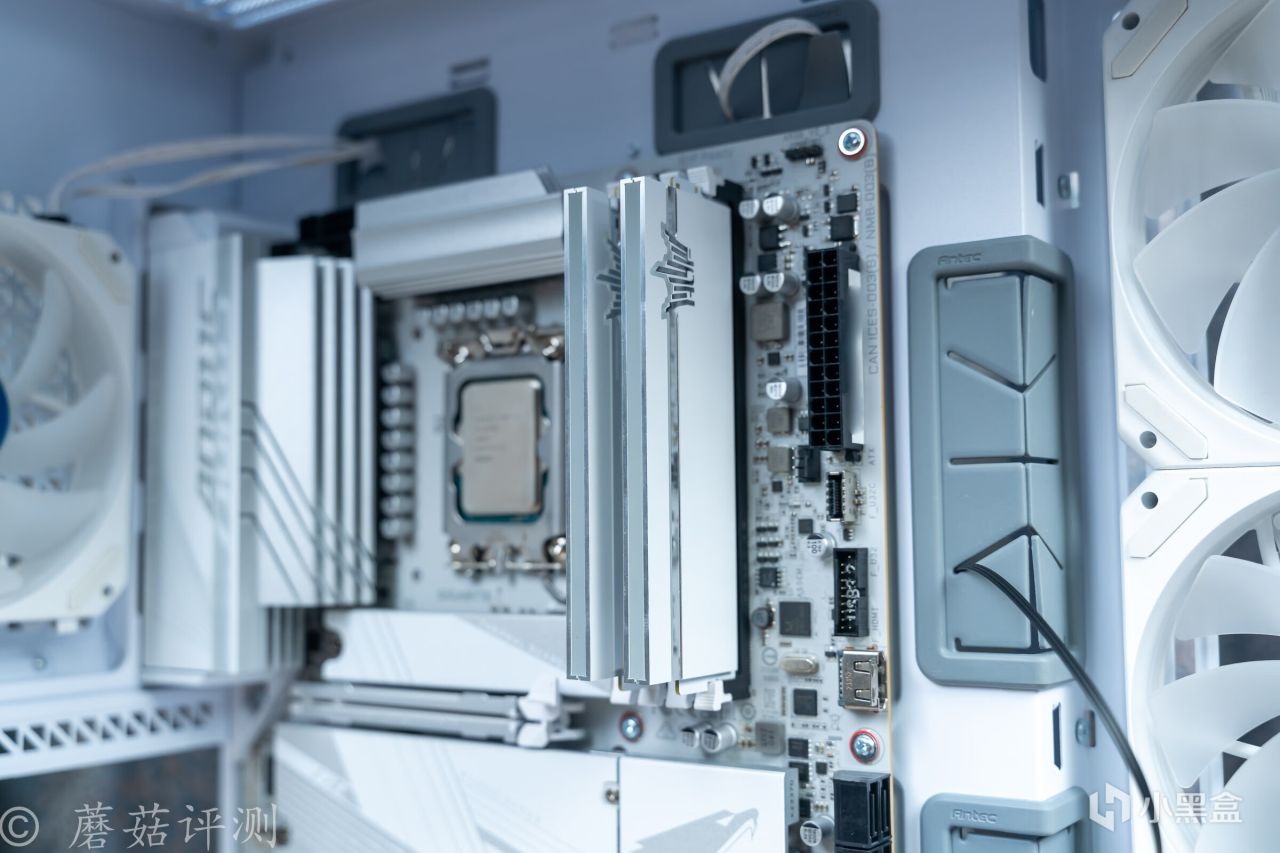 ▼主板輕鬆安裝到安鈦克C8海景房機箱內部,白色的主板搭配白色的海景房機箱,會更加合適。