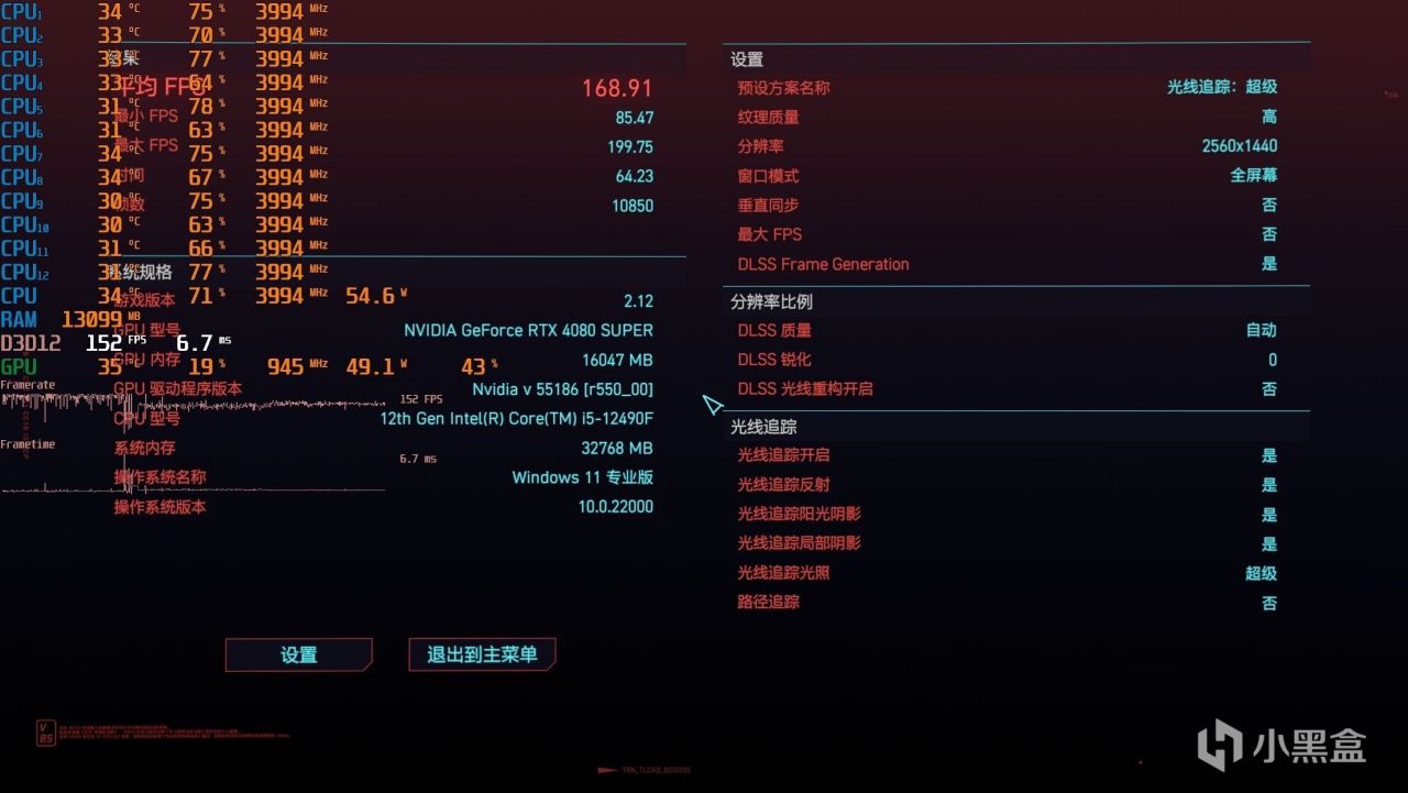 ▼賽博朋克2077,2K分辨率,光追超級特效,大力水手DLSS自動。
