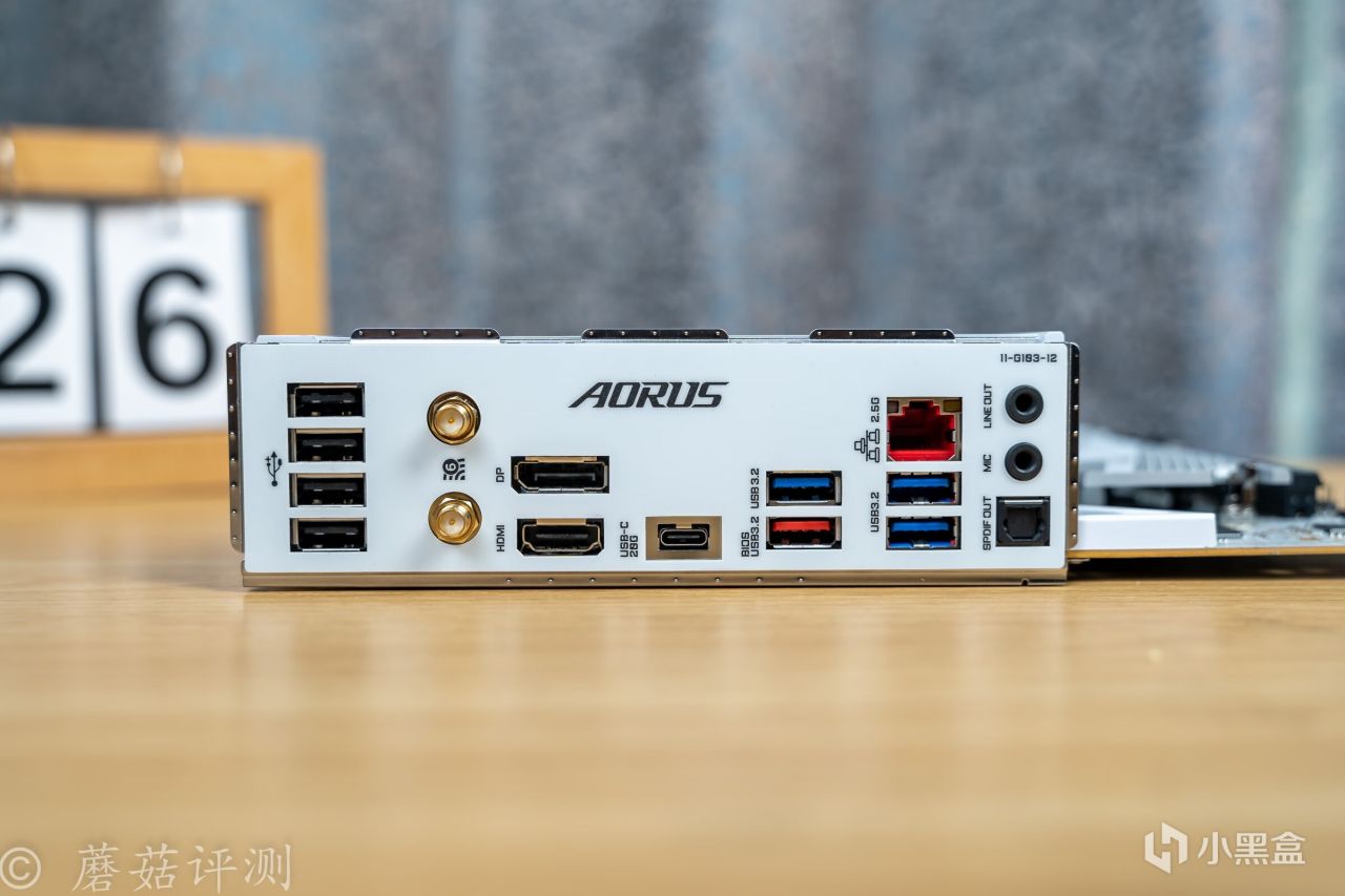 ▼在IO接口方面,這塊主板的表現也非常不錯,左側有四個USB 2.0接口,方便連接鼠標、鍵盤、耳機,接着是WIFI天線插座和DP、HDMI視頻輸出接口,右側有五個USB 3.2接口,其中20Gbps帶寬的Type-C口一個,10Gbps帶寬的Type-A接口一個,5Gbps帶寬的Type-A接口三個,還有一個2.5G的Lan口以及三個音頻接口。