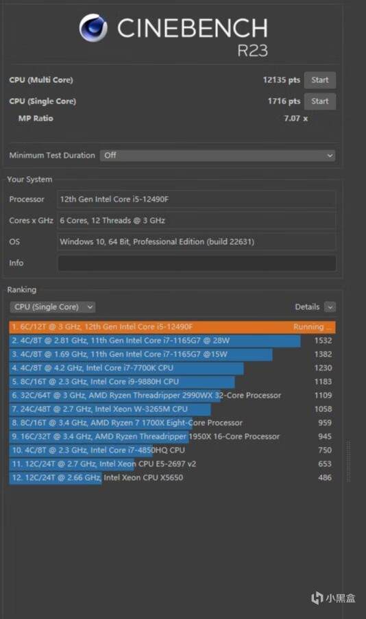 ▼跑個CineBench R23,單線程得分1716,多線程得分12135,分數都很高。