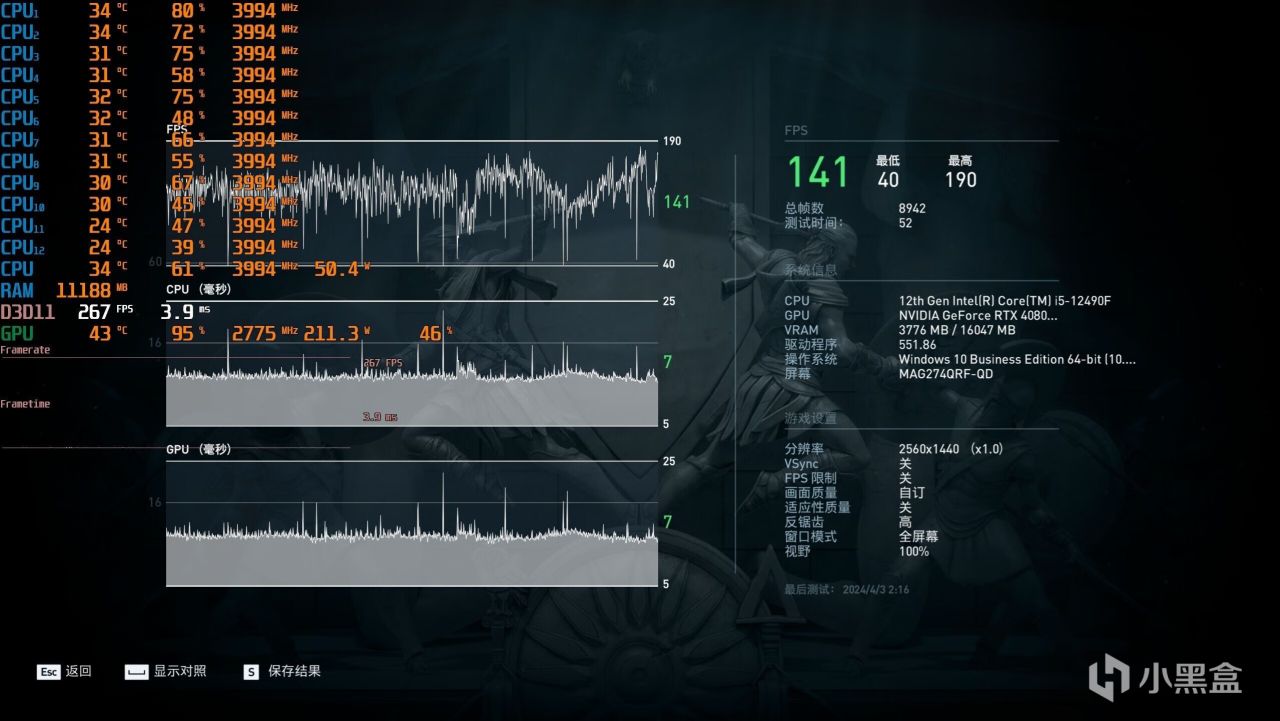 ▼最後的整體遊戲幀數在141幀左右,非常流暢。