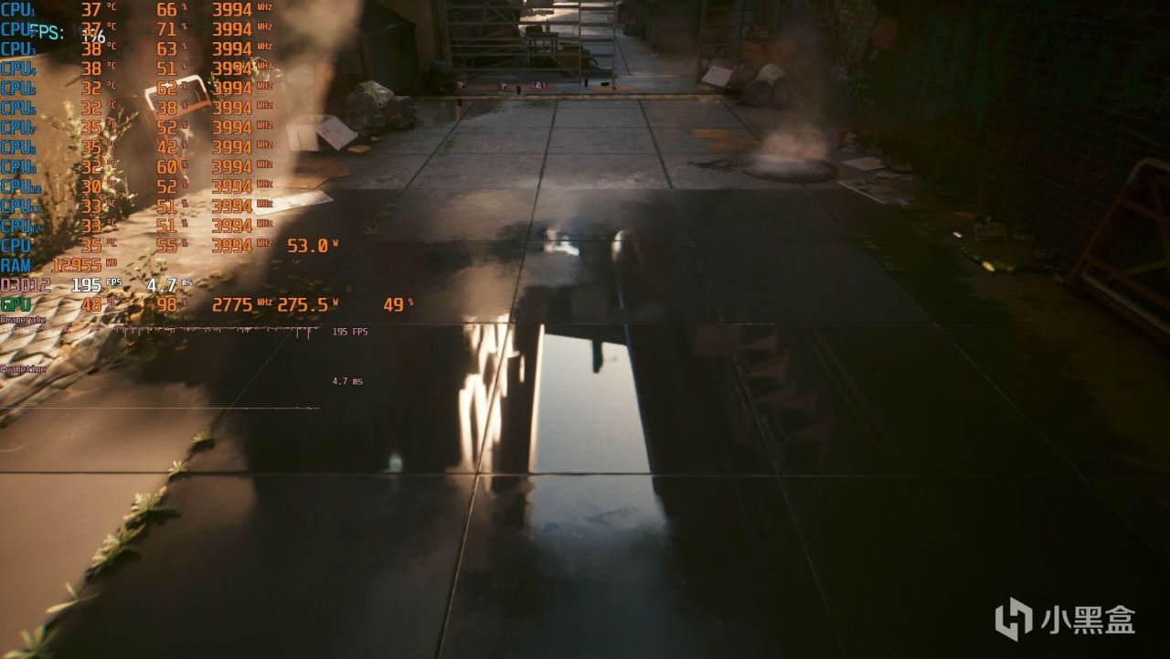 ▼室外水灘遊戲幀數在195幀左右,同樣非常流暢,顯卡佔用穩定98%,沒毛病。