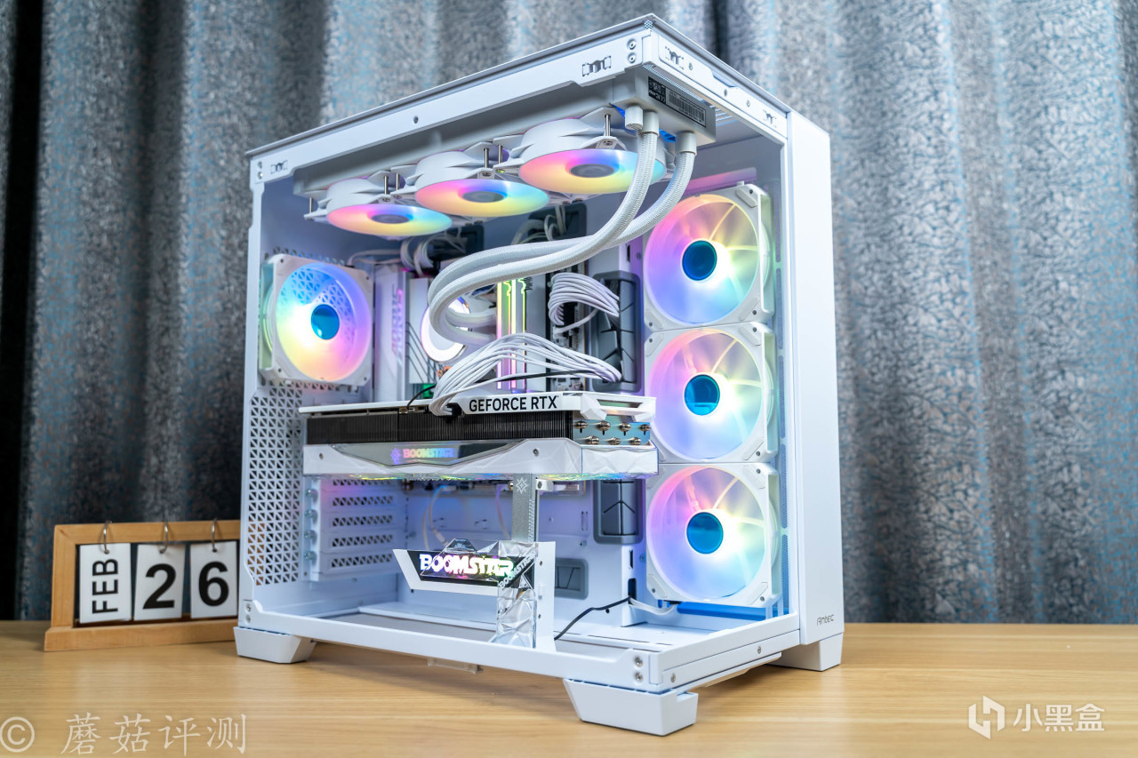 ▼機箱是安鈦克的C8海景房機箱,機箱前部和側面標配有大面積的玻璃側透,可以全方位的展示機箱內部的硬件,並且在前部玻璃面板和側面玻璃面板之間並無立柱,整機的視覺觀感會更加統一,更漂亮。