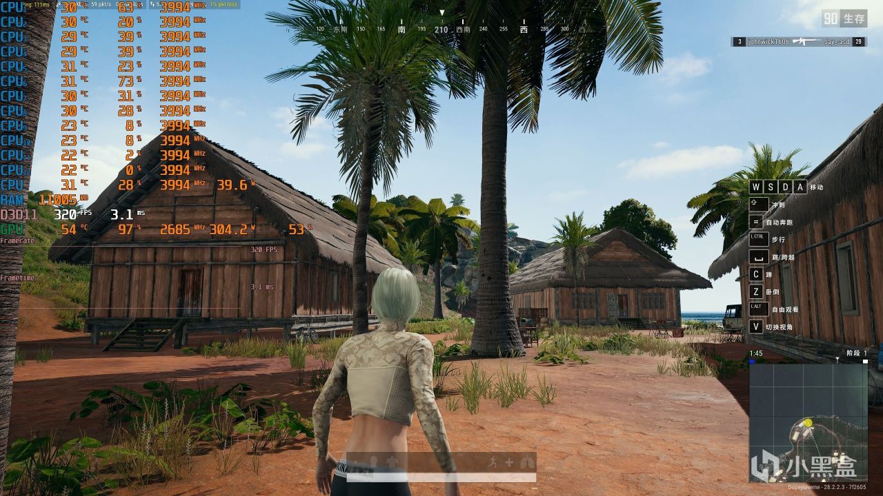 ▼喫雞PUBG,2K分辨率,全高畫質,室外遊戲幀數在320幀左右,非常流暢,顯卡佔用97%,沒啥問題。