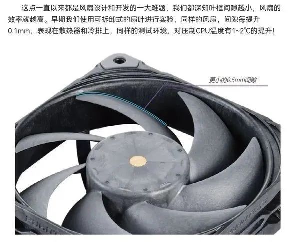 小小的葉框間隙,凝聚了工程師的無數心血;一分一毫之間,決定着風扇性能的高低。